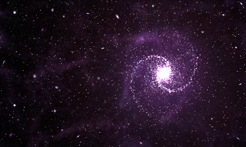 One of the bigger problems was the draw call limit, for low-end devices at the time this can be around 30-50 (PC limits are often well into the hundreds). So batching and texture sheet animation were abused for the star systems, both the background galaxy particles and the the central galactic core system. One of the great things about Unity is that while the particle material is simple, the amount of particles can be driven through the roof without penalty (even on mobile hardware!). Bear in mind that Shuriken was still fairly new at the time, so rather than the gravity wells, radial velocities and forces we have now, I had to work out velocity curves by hand in the curve editor….and yes, the galaxy turns, dragging stars from the arms inwards, oh and the galaxy moves across the world too.