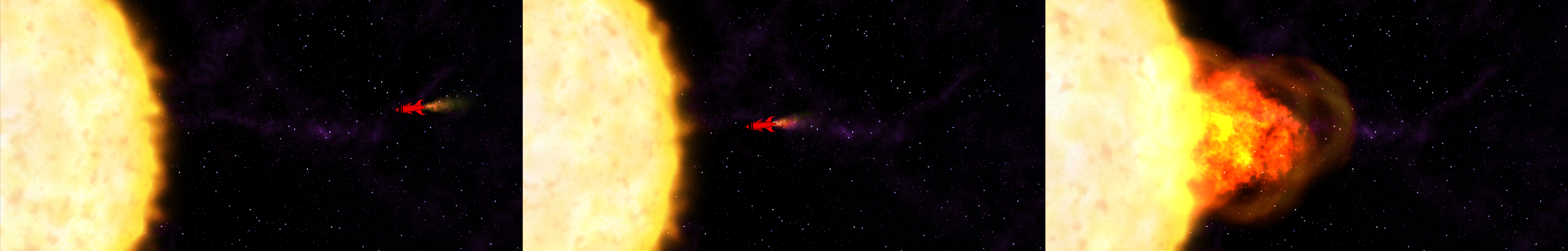 I find space is also a great place to just build some nice FX. Missiles are great fun to work with because you’ve got to balance particle count with trail length and quality. At the same time, smoke and particulate behaves so differently in space compared to the atmosphere.